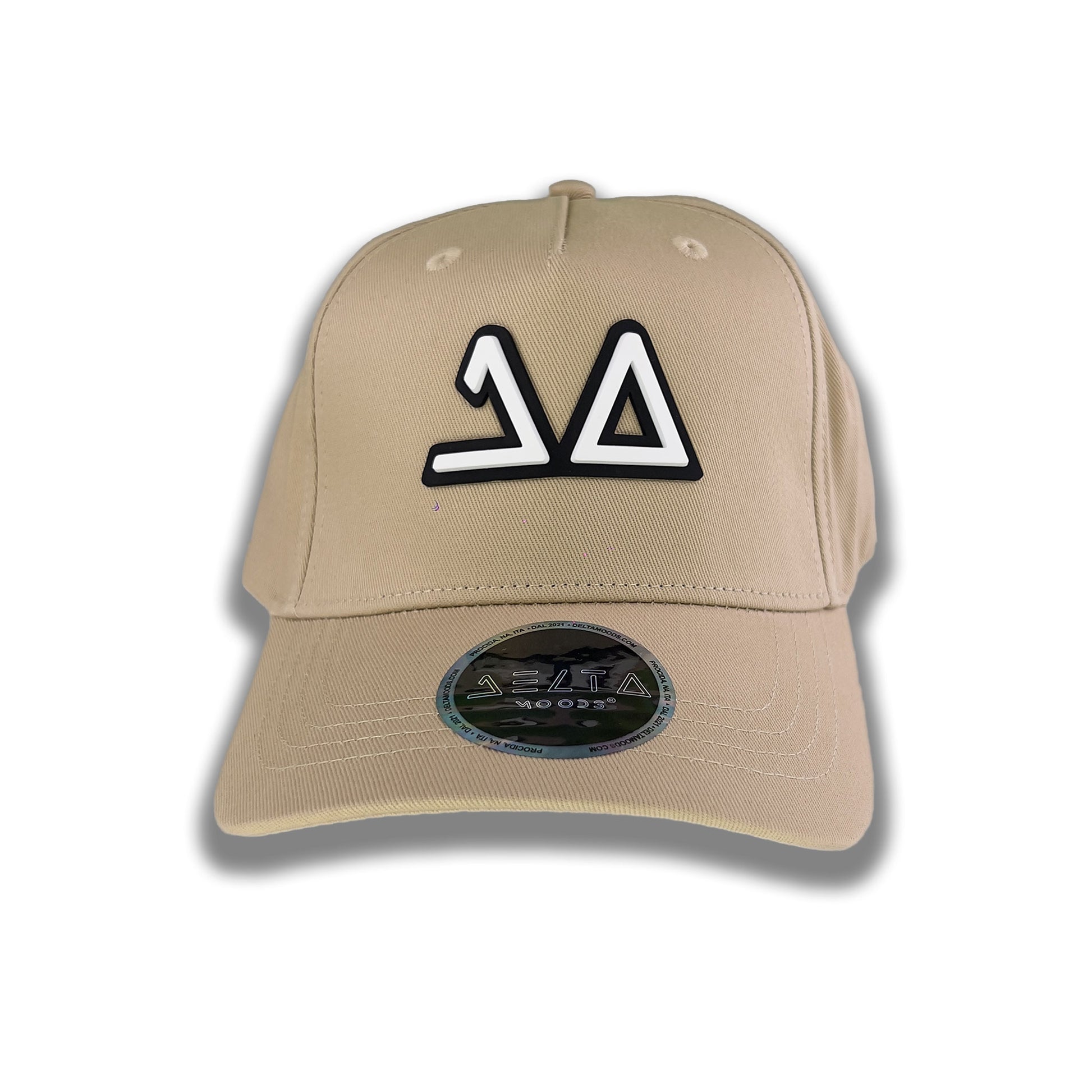 Sulla visiera del cappello è applicato lo stickers delta moods.