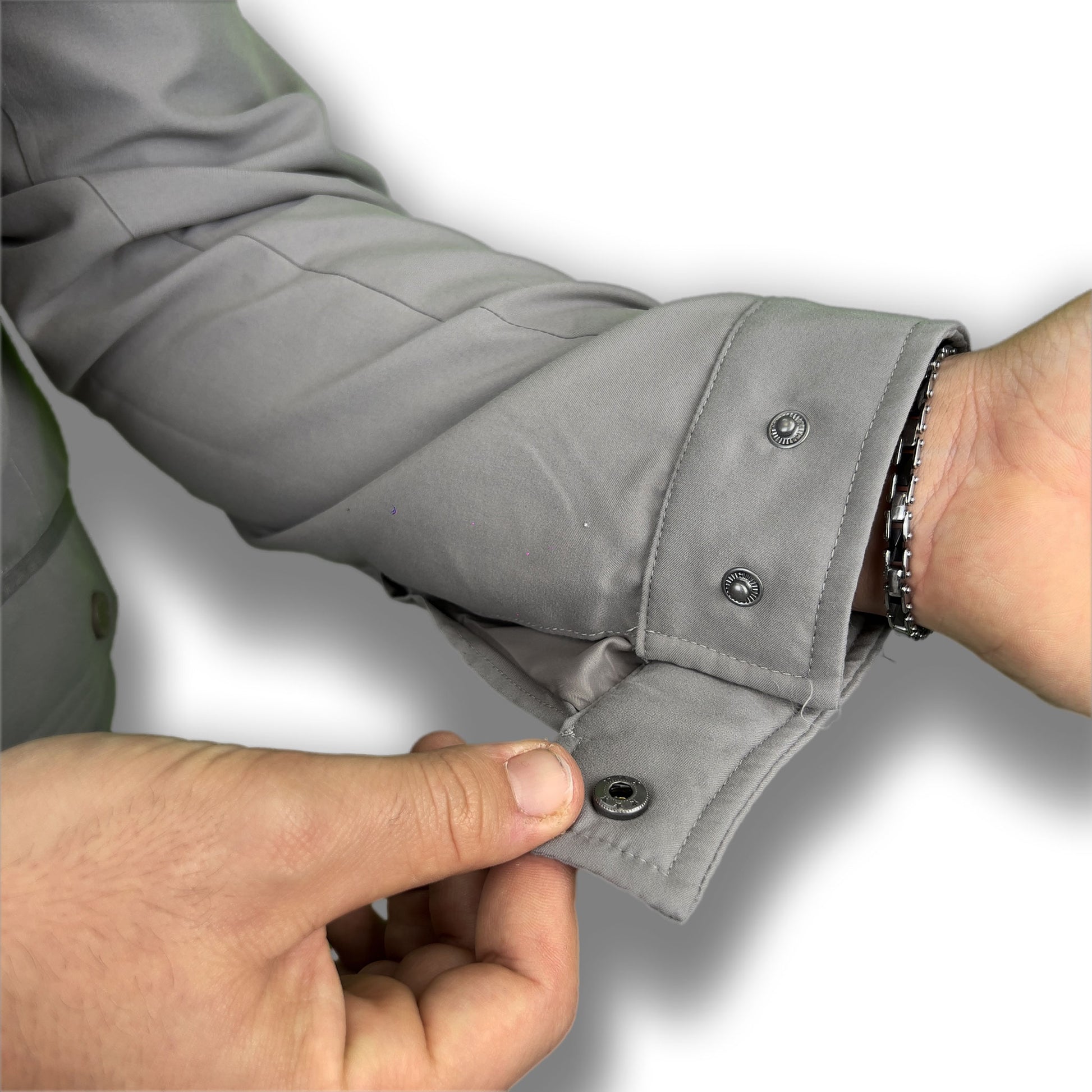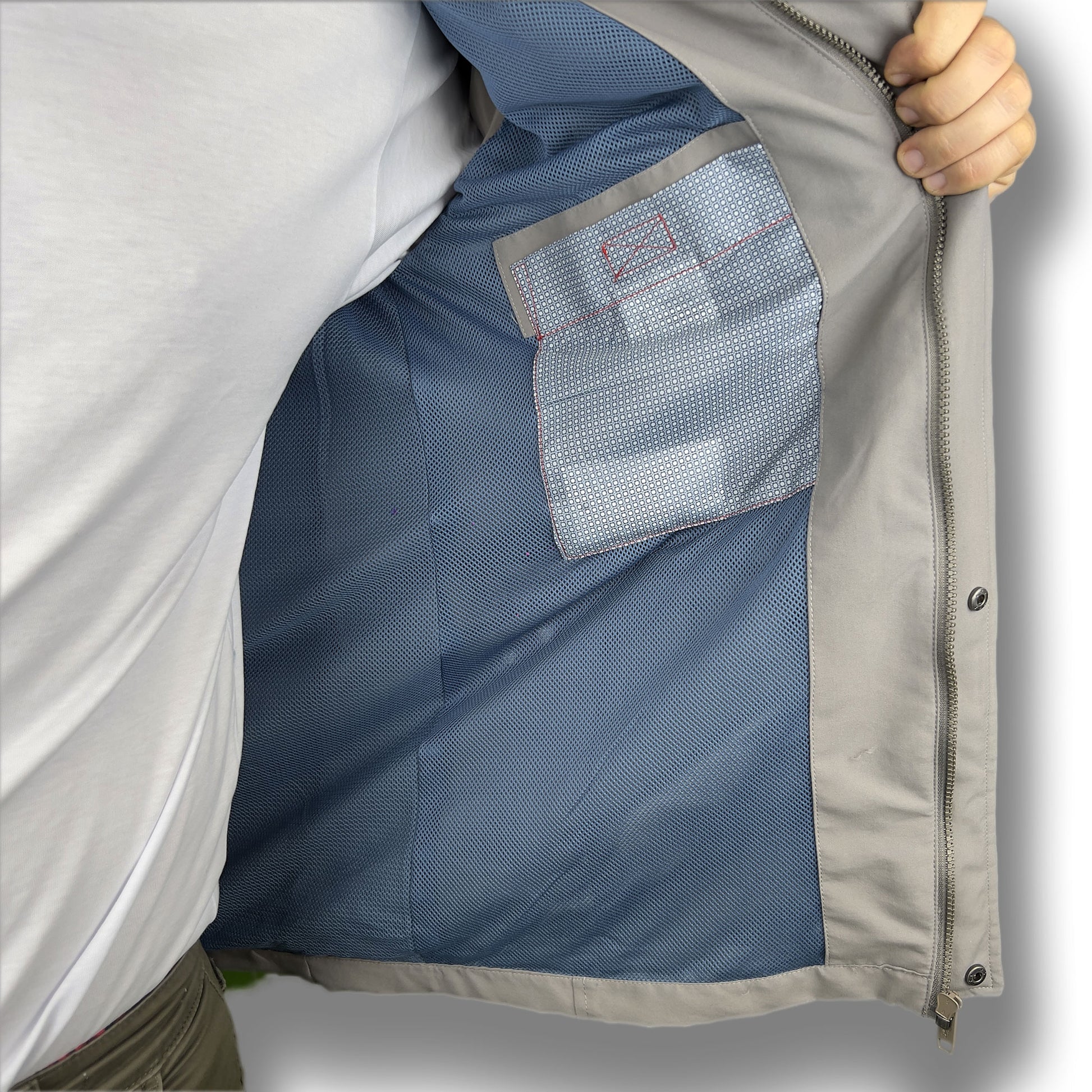 Dettagli: Interno foderato in rete, cappuccio removibile, bottoni automatici ai polsi